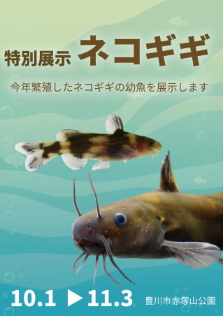 今年繁殖したネコギギの幼魚200匹を展示します。